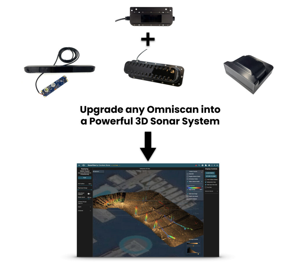 Traditional sonars show echoes. The Omniscan when updated with the Omniscan 3D Upgrade Kit, reveals structure.Using a multi-element receive array and motion-based reconstruction, the system generates detailed volumetric sonar data, enabling operators to visualize underwater scenes in true 3D. Structures, terrain, and objects appear with spatial depth, improving interpretation, measurement, and situational awareness.* Real-time 3D point-cloud generation* Detailed volumetric imaging in low or zero visibility* Improved object detection and spatial understanding* Ideal for inspection, mapping, and navigation workflows