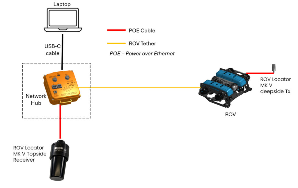 The ROVL MK V is designed for straightforward integration into modern network-based underwater systems. Compatible with BlueOS-based vehicles, allowing deployment using standard Ethernet networking. The system integrates alongside other Cerulean sensors on Raspberry Pi or similar onboard computers. Position data can be interfaced with MAVLink-based navigation and vehicle control systems, supporting vehicle tracking, navigation feedback, and autonomous workflows. The ROVL MK V operates alongside sonars, DVLs, cameras, and onboard computers on a shared network.